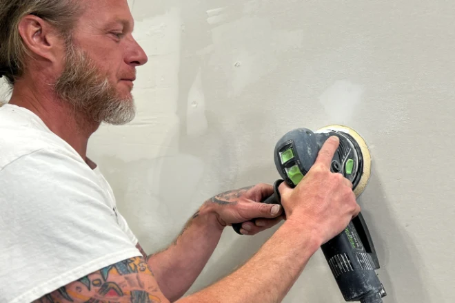 - Once dry, sand lightly until the area is flush with the wall
