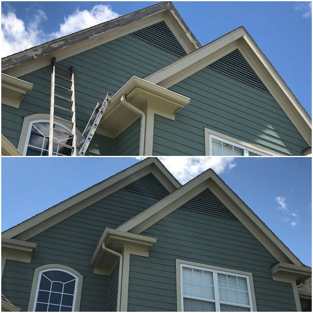 *We like to paint exterior trim using Benjamin Moore Regal for our clients’ exterior wood trim painting projects